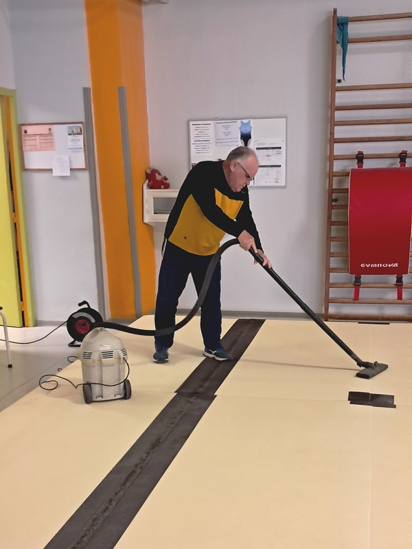 02 Avril 2026 - CCS Tulle, salle de gym Depuis 20 ans que les gymnastes usent leur justaucorps dessus, Il est temps de remplacer le praticable par un plus moderne. |